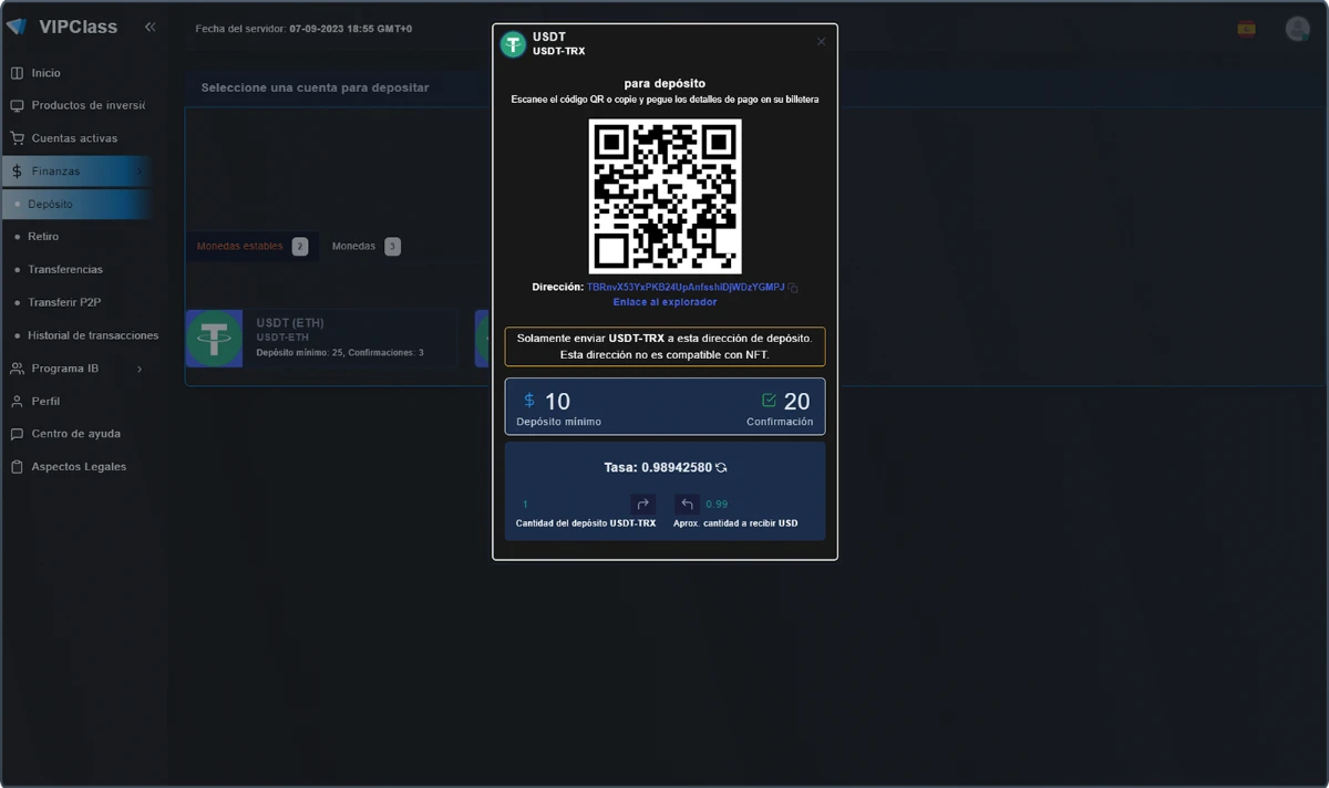 Acceda a los diferentes metodos de depositos disponibles (Cash en Sucursal, Transferencia Bancaria, Cryptomonedas)