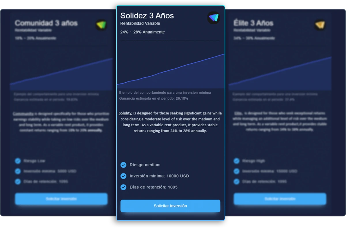 Solidity ofrece rentabilidades consistentesgarantizando anualmente retornos del 24 al 28%.